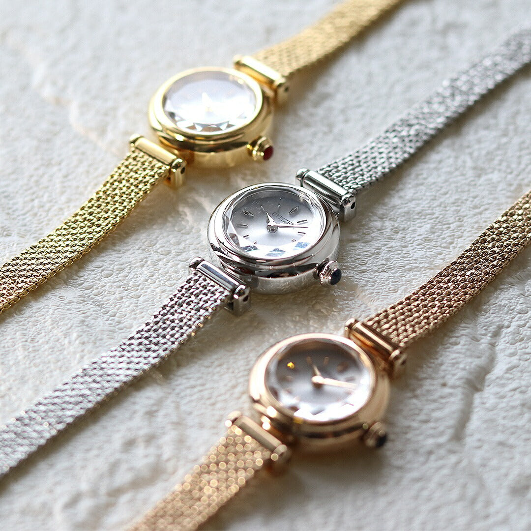 真正的产品7年保修活动免费送货公民钥匙生态驱动器圆形网眼太阳能生态驱动器妇女观察EG7082-66A公民KII ECO-DRIVE模拟银色X粉红色◆公民KII:具有古董设计,并且具有Eco-Drive的功能。一支时尚的网状乐队已在圆形模型中发行,像珠宝一样闪闪发光。一个圆形盒,具有圆形和微妙的外观。看起来像装饰销和网状乐队的零件会营造出别致的古董珠宝般的外观。切割玻璃受到玻璃配件盒的启发,以闪闪发光和精致的饰面闪耀。装饰表盘和简单条索引的切割零件可营造出更时尚的外观。 Ryuzu添加了一种强调颜色以匹配每种情况。发布日期:2021年11月发布