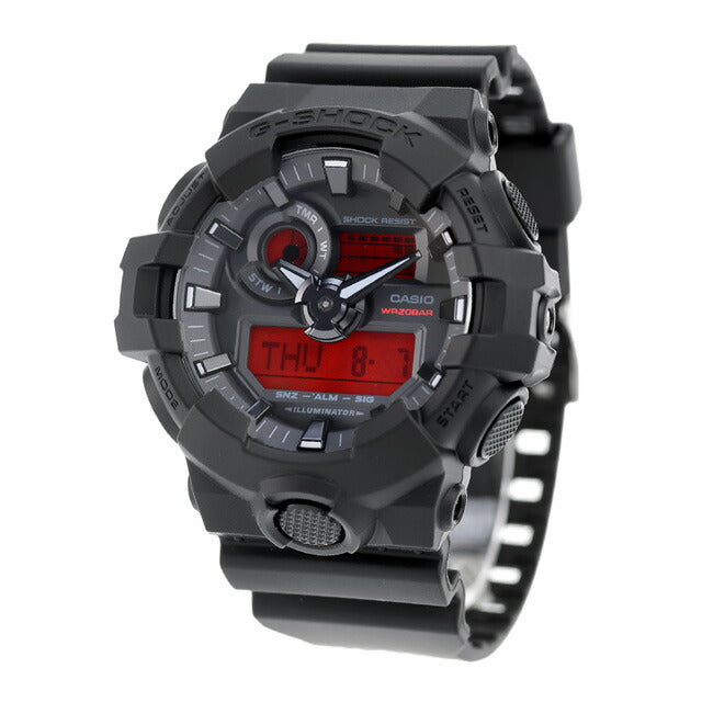 7年保証キャンペーン gショック ジーショック G-SHOCK アナログデジタル GA-700シリーズ クォーツ 電池式 クォーツ 電池式 メンズ 腕時計 GA-700BBR-1ADR ANALOG-DIGITAL GA-700 SERIES アナデジ ブラック ◆耐衝撃タフネスを追求し進化を続けるG-SHOCKから、ブランドカラーであるブラックとレッドにこだわったシリーズの登場です。ベゼル・バンド・文字板にはブラックを採用し、高彩度のレッド液晶がブラックに映え、視認性を高めるだけでなく、大胆なデザインの限界に挑戦しています。バックライトを点灯すればデジタル表示がさらに明るくなり、視認性が向上します。ブラックを基調としたクールな仕上がりのモデルです。自分へのご褒美にはもちろん、プレゼントにもおすすめです。 国内モデル品番:GA-700BBR-1AJF