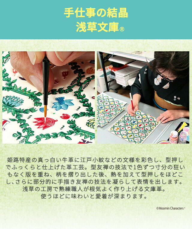長財布 ムーミン谷の仲間たち 浅草文庫(R) 牛革製長財布 財布 レディース 日本製 50696 マルチカラー ◆日本の伝統が息づく革工芸「浅草文庫(R)」にムーミン谷の仲間たちが大集合♪ムーミン、スナフキン、リトルミイ、ニョロニョロにスティンキー。個性豊かで愛らしいムーミン谷の仲間たちが、カラフルな「浅草文庫(R)」のお財布になりました。立体的な型押しによって、ムーミンたちや北欧の草花模様が量感豊かに浮かび上がる様子は、見ているだけでわくわくします。
