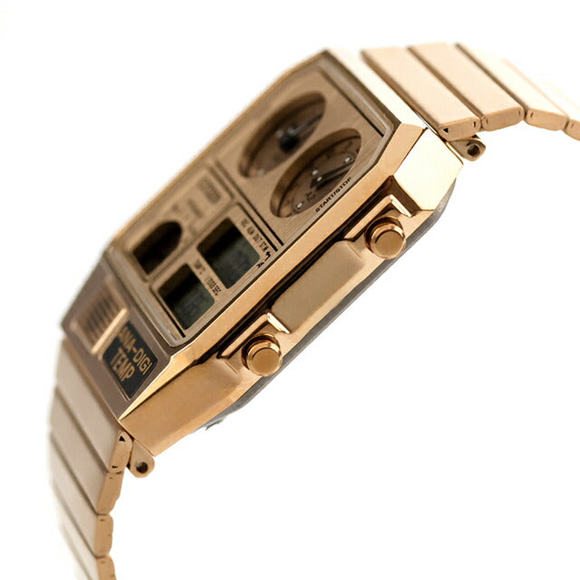 正規品 7年保証キャンペーン 送料無料 シチズン コレクション レコードレーベル 流通限定モデル 数量限定 クロノグラフ メンズ レディース 腕時計 JG2104-53R CITIZEN RECORD LABEL Metallic ANA-DIGI TEMP アナデジ ピンクゴールド ◆1980年代に登場した、レトロフューチャーなデザインが現在でも大人気。絶妙なサイズ感で、男女問わずユニセックスに楽しめるアナデジテンプの限定モデルです。ケース、バンド、文字板すべてにステンレスを使い、全体をワンカラーでまとめた高級感あふれるフルメタル仕様です。文字板の上板に施した粗いヘアラインが、メタルの質感をきわだたせています。スタイリッシュなシルバー、華やかなイエローゴールド、より限定感のあるウォームゴールドの3色展開です。 発売日:2025年10月発売