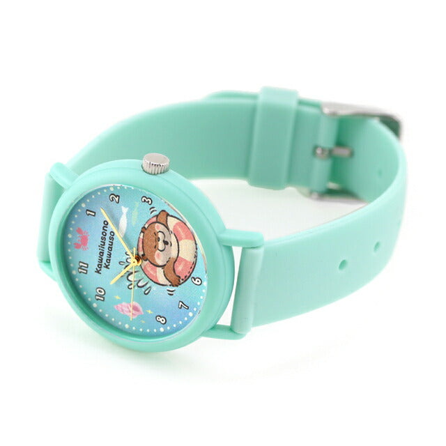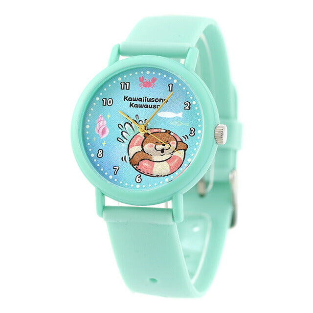 正規品 カオル 可愛い嘘のカワウソ×KAORU 思い出Selection -浮き輪- ココナッツの香り 日本製 メンズ レディース 腕時計 KAORU012G1 KAORU アナログ ライトブルー ライトグリーン ◆KAORU(カオル)は、日本の老舗香料メーカー、ゴムメーカー、時計メーカーがタッグを組んで作り上げた時計です。 めぐる季節を楽しむカワウソの愛嬌溢れるアートと、ほんのり甘く香るココナッツの元気な香りに癒される『おもいでSelection』シリーズ。仲良しのカモちゃんと訪れた、海水浴のエピソード。海に着く前から待ちきれず浮き輪をしていたカワウソが元気いっぱい泳いでいます。海の生き物たちをワンポイントに散りばめ、身につけて可愛く、日常の中でふと目にするたびに元気になれる腕時計です。