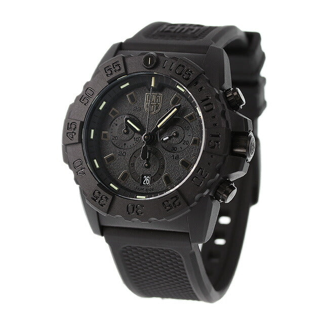 7年保証キャンペーン ルミノックス ネイビーシールズ クロノグラフ 3580 シリーズ 45mm スイス製 クオーツ メンズ 腕時計 l3581-BO LUMINOX NAVY SEAL CHRONOGRAPH 3580 SERIES アナログ オールブラック ◆LUMINOX(ルミノックス)は1989年に創業。高性能なスポーツラインを展開しており、ラテン語で「明るい夜」を意味するブランド名を掲げているように、最先端の発光と視認性の良さを特徴としています。極限の状況下で行われるミッションで必要となる視認性を確保しているルミノックス時計は、特殊軍用時計として絶対的な信頼感を得ています。 3500シリーズデザインをベースに3080シリーズがリニューアル。文字盤のアラビアンインデックスをバーインデックスに変更することで、絶妙なデザインバランスに。文字盤には、ネイビーシールズのスローガンである「THE ONLY EASY DAY WAS YESTERDAY」が刻まれています。また、裏蓋をステンレスに変更し、堅牢性をアップ。ベルトも耐久性を高めるためにラバーに変更しました。