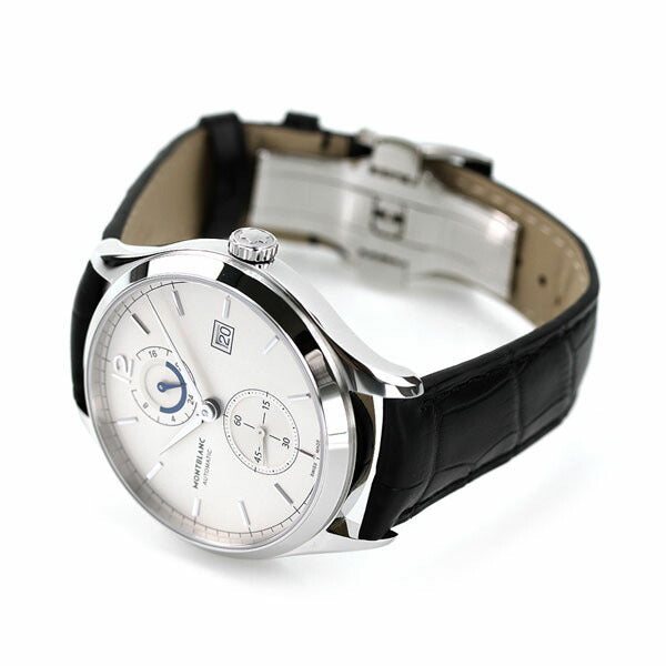 7年保証キャンペーン モンブラン ヘリテイジ クロノメトリー デュアルタイム 41.5mm スモールセコンド スイス製 自動巻き メンズ 腕時計 MB112540 MONTBLANC HELITAGE CHRONOMETRIE DUAL TIME アナログ シルバー×ブラック 革ベルト ◆1906年、筆記具を専門に取り扱うシンプロ・フィラーペン・カンパニーとして誕生し、高級万年筆の名品「モンブラン」を発表。後に、アルプス最高峰のモンブランの名前を取り入れ、社名を変更しています。1997年から時計製造を開始。ジュネーブで開催される有数の時計見本市、SIHH(国際高級時計展:ジュネーブサロン)に参加し、熟練の職人技による時計を発表。世界中のウォッチ&ジュエリー業界の大きな注目と称賛を浴びました。モンブランは、高品質と伝統的なクラフツマンシップを始めとする永続的価値を守り続けています。 クラシックな雰囲気の漂うヘリテイジ。シンプルかつ上品なデザインが特徴。誕生日や記念日などのプレゼントにもおすすめです。 機械式腕時計