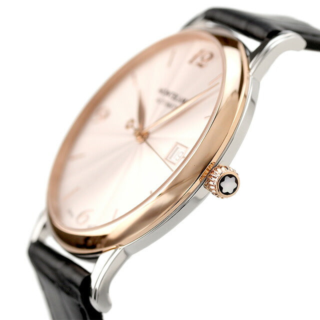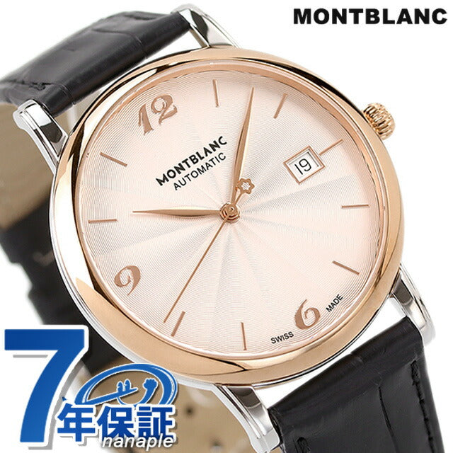 7年保証キャンペーン モンブラン トラディション スイス製 自動巻き メンズ 腕時計 114336 MONTBLANC アナログ ピンクベージュ ブラック 黒 革ベルト ◆1906年、筆記具を専門に取り扱うシンプロ・フィラーペン・カンパニーとして誕生し、高級万年筆の名品「モンブラン」を発表。後に、アルプス最高峰のモンブランの名前を取り入れ、社名を変更しています。1997年から時計製造を開始。ジュネーブで開催される有数の時計見本市、SIHH(国際高級時計展:ジュネーブサロン)に参加し、熟練の職人技による時計を発表。世界中のウォッチ&ジュエリー業界の大きな注目と称賛を浴びました。モンブランは、高品質と伝統的なクラフツマンシップを始めとする永続的価値を守り続けています。 トラディションはエレガントでクラシックな魅力を湛えた、モンブランを代表するデザイン。シンプルかつ上品なデザインが特徴。誕生日や記念日などのプレゼントにもおすすめです。 機械式腕時計