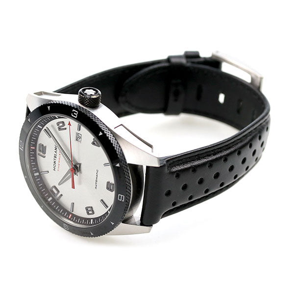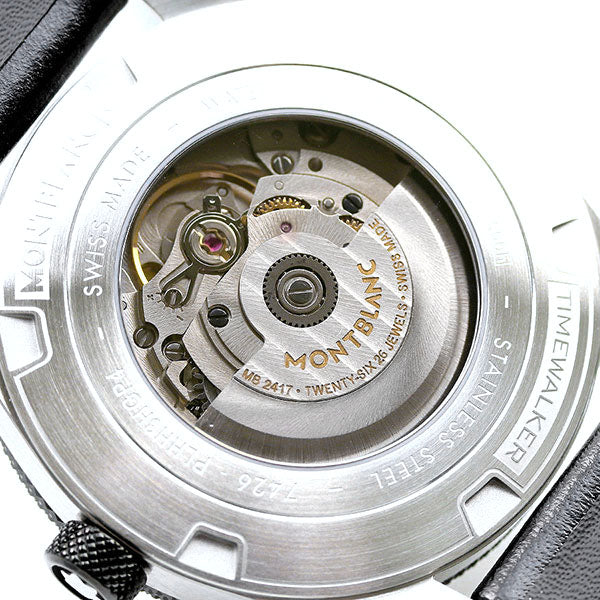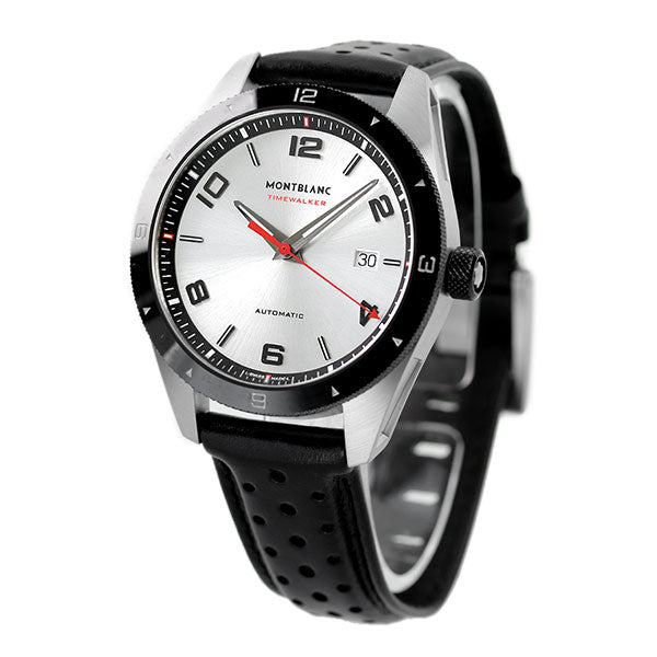 7年保証キャンペーン モンブラン タイムウォーカー 41mm スイス製 自動巻き メンズ 腕時計 MB116058 MONTBLANC TIMEWALKER アナログ シルバー×ブラック 革ベルト ◆1906年、筆記具を専門に取り扱うシンプロ・フィラーペン・カンパニーとして誕生し、高級万年筆の名品「モンブラン」を発表。後に、アルプス最高峰のモンブランの名前を取り入れ、社名を変更しています。1997年から時計製造を開始。ジュネーブで開催される有数の時計見本市、SIHH(国際高級時計展:ジュネーブサロン)に参加し、熟練の職人技による時計を発表。世界中のウォッチ&ジュエリー業界の大きな注目と称賛を浴びました。モンブランは、高品質と伝統的なクラフツマンシップを始めとする永続的価値を守り続けています。 タイムウォーカーは、軽やかさを演出するラグや視認性の高いアラビア数字のインデックスが特徴。テクニカルでアバンギャルドな魅力を引きたてます。モンブランならではの高級感が漂うモデル。記念日などの贈り物にもおすすめです。 機械式腕時計