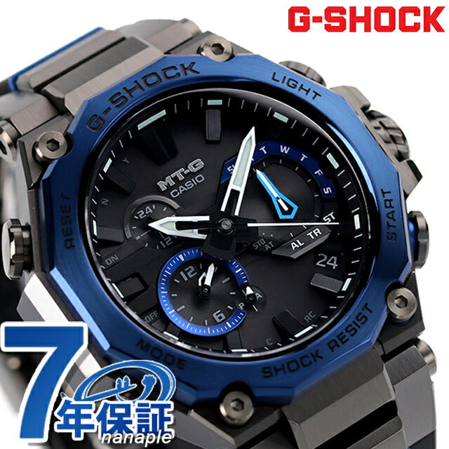 7年保証キャンペーン gショック ジーショック CASIO G-SHOCK MT-G MTG-B2000シリーズ 電波ソーラー Bluetooth 電波ソーラー メンズ 腕時計 MTG-B2000B-1A2ER MT-G MTG-B2000 Series アナログ ブラック ◆タフネスを追求し進化し続けるG-SHOCKから、メタルと樹脂を融合した耐衝撃ボディに先進技術が搭載されたMT-Gの、カーボン素材を活用したモデルが登場。一体構造のカーボンモノコックケースでモジュールを保護し、外側をメタルパーツで覆った「デュアルコアガード構造」を構築。ケースサイドがメタルになることで洗練されたデザインになりました。更にメタルフレームとベゼルを別体にしたことで、インパクトのあるカラーリングも実現。外装のメタルパーツにはミラー仕上げを施し、サイドボタンもガードレス構造としています。また、透明度の高いサファイアガラスの採用と、カシオ山形工場の加工技術による繊細な彫刻により、商品全体の質感も高くなっています。加えて「レイヤーコンポジットバンド」を採用し、メタルの質感を向上しつつ軽量化しました。 国内モデル品番:MTG-B2000B-1A2JF