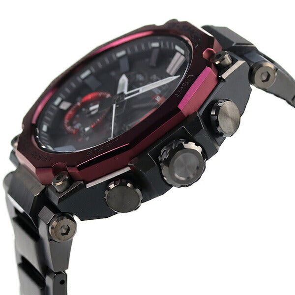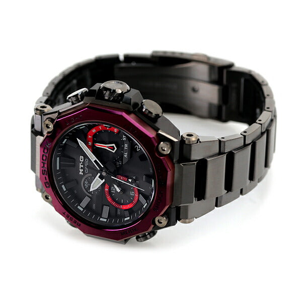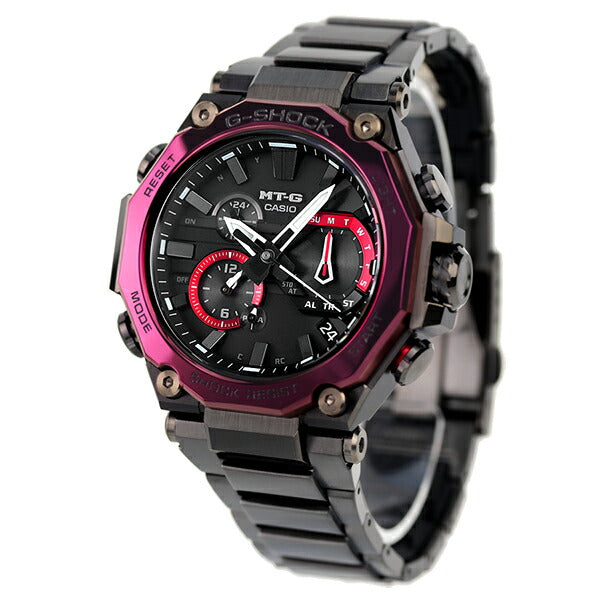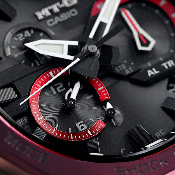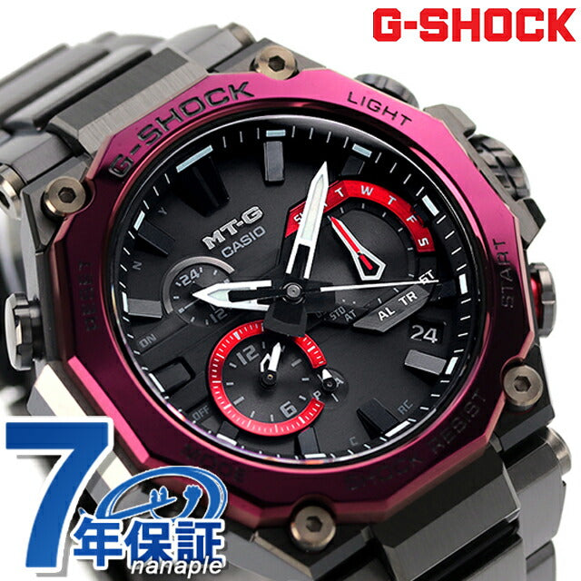 7年保証キャンペーン gショック ジーショック CASIO G-SHOCK MT-G MTG-B2000シリーズ 電波ソーラー Bluetooth 電波ソーラー メンズ 腕時計 MTG-B2000BD-1A4ER MT-G MTG-B2000 Series アナログ ブラック ◆タフネスを追求し進化し続けるG-SHOCKから、メタルと樹脂を融合した耐衝撃ボディに先進技術が搭載されたMT-Gの、カーボン素材を活用したモデルが登場。一体構造のカーボンモノコックケースでモジュールを保護し、外側をメタルパーツで覆った「デュアルコアガード構造」を構築。ケースサイドがメタルになることで洗練されたデザインになりました。更にメタルフレームとベゼルを別体にしたことで、インパクトのあるカラーリングも実現。外装のメタルパーツにはミラー仕上げを施し、サイドボタンもガードレス構造としています。また、透明度の高いサファイアガラスの採用と、カシオ山形工場の加工技術による繊細な彫刻により、商品全体の質感も高くなっています。加えて「レイヤーコンポジットバンド」を採用し、メタルの質感を向上しつつ軽量化しました。 国内モデル品番:MTG-B2000BD-1A4JF