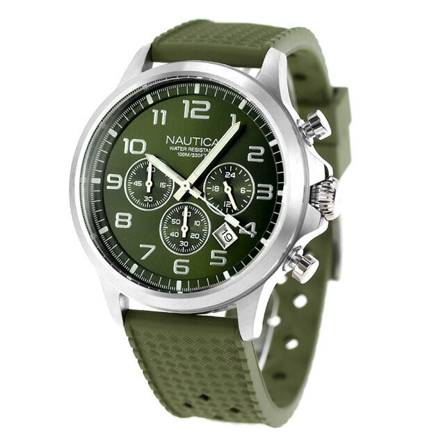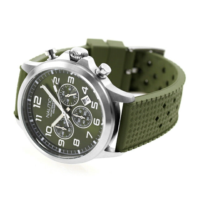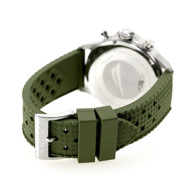 正規品 7年保証キャンペーン ノーティカ エヌシーティー ブルーオーシャン クロノグラフ メンズ 腕時計 NAPBOS402 NAUTICA NCT BLUE OCEAN アナログ グリーン ◆ノーティカは1983年にニューヨークで誕生したアメリカンライフスタイルブランドです。モダンで洗練されたマリンスタイリングを得意とし、その魅力をあますことなく表現したノーティカウォッチは、世界最大級の時計会社グループによる革新的な最先端技術がもたらす高品質・高性能を併せ持っています。 「NCT BLUE OCEAN/エヌシーティーブルーオーシャン」は、リサイクルステンレススチールケース、快適なラバーストラップ。クラシックなベゼルレススタイルと繊細なディテールを備えた新しいクロノグラフです。誕生日や記念日のプレゼントにもおすすめです。