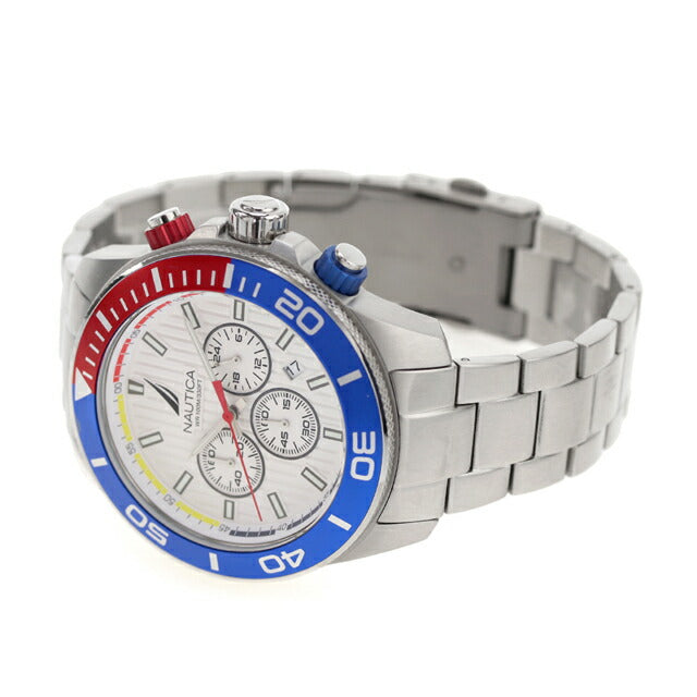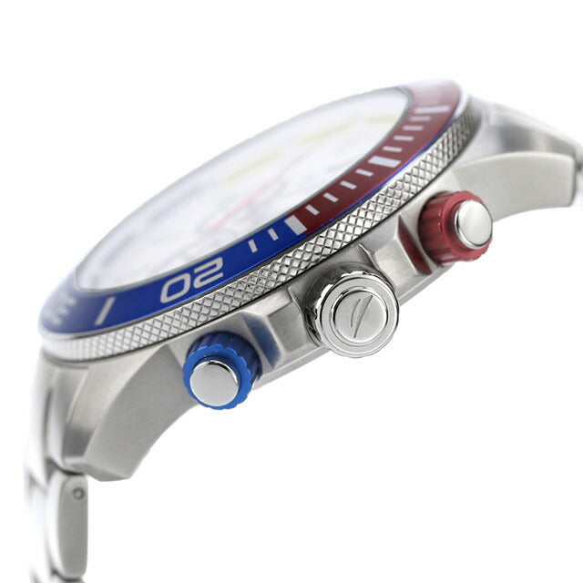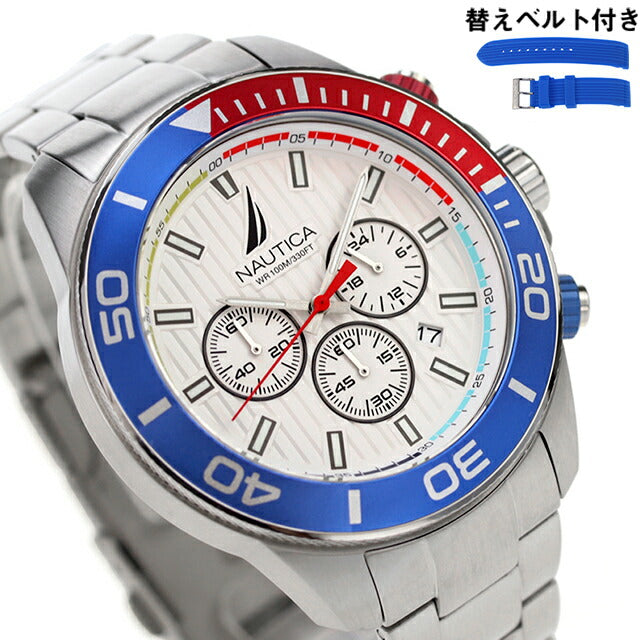 正規品 7年保証キャンペーン ノーティカ ノーティカワン クロノグラフ 替えベルト メンズ 腕時計 NAPNOF301 NAUTICA NAUTICA ONE アナログ ホワイト 白 ◆ノーティカは1983年にニューヨークで誕生したアメリカンライフスタイルブランドです。モダンで洗練されたマリンスタイリングを得意とし、その魅力をあますことなく表現したノーティカウォッチは、世界最大級の時計会社グループによる革新的な最先端技術がもたらす高品質・高性能を併せ持っています。 洗練された男性のためにデザインされた「NAUTICA ONE/ノーティカワン」のウォッチボックスセット。シリコンストラップとステンレススチールリンクブレスレットバンドを備えたこのクロノグラフタイムピースは、コントラストカラーのベゼル、リサイクルステンレススチールケース。3つのサブダイヤルを備えたスポーティーモデルです。