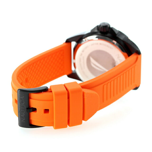 正規品 7年保証キャンペーン ノーティカ エヌエスアール メンズ 腕時計 NAPNRS405 NAUTICA NSR アナログ ブラック オレンジ 黒 ◆ノーティカは1983年にニューヨークで誕生したアメリカンライフスタイルブランドです。モダンで洗練されたマリンスタイリングを得意とし、その魅力をあますことなく表現したノーティカウォッチは、世界最大級の時計会社グループによる革新的な最先端技術がもたらす高品質・高性能を併せ持っています。 カラフルで若々しい外観にアップデートされた3針「NSR/エヌエスアールウォッチ」は、快適でスポーティなシリコンストラップを備えています。アウトドアシーンやカジュアルスタイルにおすすめです。