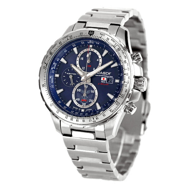 7年保証キャンペーン 正規品 ケンテックス 航空自衛隊 クロノグラフ 日本製 ソーラー メンズ 腕時計 S802M-01 Kentex JASDF アナログ ダークブルー ◆航空自衛隊プロフェッショナルモデルが更なる進化を遂げ、ソーラー発電式の本格パイロット仕様で登場。1/20秒単位の時間計測が可能なクロノグラフを新たに搭載し、ベゼルには本格パイロットウォッチにふさわしいフライトコンピュータ(回転計算尺)を装備。さらに10気圧防水(100M相当)設計で、航空自衛隊の日々の任務を支える本格仕様となっています。3時位置には日本の国旗と航空自衛隊を意味する「JASDF」の正式ロゴが入り、6時位置には、幕僚監部協力による海航空自衛隊の正式なエンブレム(徽章)をデザイン。ベルトはミラーとヘアライン仕上げの組み合わせで高級感のある仕上がりに。裏蓋には防衛相航空自衛隊の文字とともに公式エンブレムを刻印。安心と信頼の日本製でプレゼントにもおすすめです。 発売日:22年05月発売