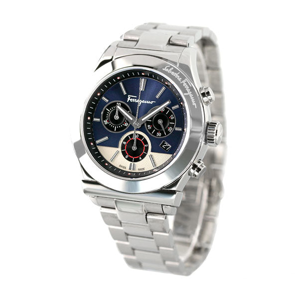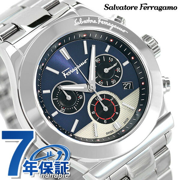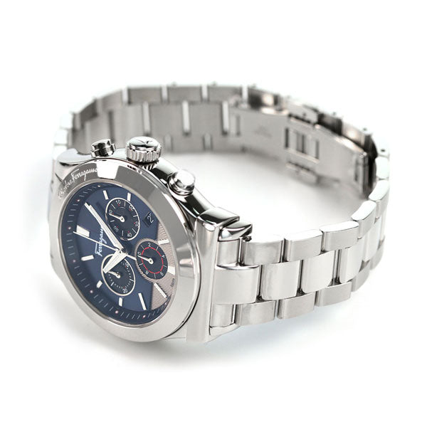 7年保証キャンペーン サルヴァトーレ・フェラガモ 1898 42mm スイス製 クロノグラフ メンズ 腕時計 SFFM01320 Salvatore Ferragamo 1898 アナログ ブルー ◆創業者の名を冠したサルヴァトーレ フェラガモは、靴の専門店でした。美しいデザイン、優れた技術、履き心地の良さで世界中にその名を轟かせ、現在ではトータルファッションブランドとして知られています。フェラガモウォッチは提携工場での組み立てを行っており、スイス製のムーブメントを用いています。伝統的なイタリアのクラフトマンシップを随所に生かし、シンプルながらも洗練された個性を感じさせるデザインが魅力です。 活動的でスタイリッシュな現代の旅行者をデザインコンセプトにし、絶妙なバランスのプロポーションとシンプルなデザインで、カジュアルで洗練された大人に向けたニュースタイルを演出。クラシックな優雅さと現代的な気品を併せ持ち、大人の男性の魅力を引き出してくれます。