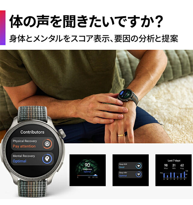 健康:バイオトラッカー5.0 PPG(血中酸素、8PD+2LED)、生体電気インピーダンスセンサー(BIA)