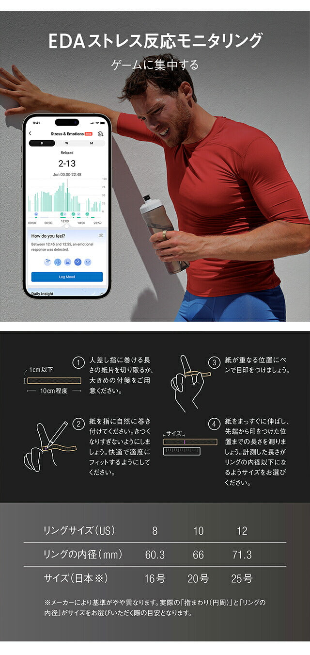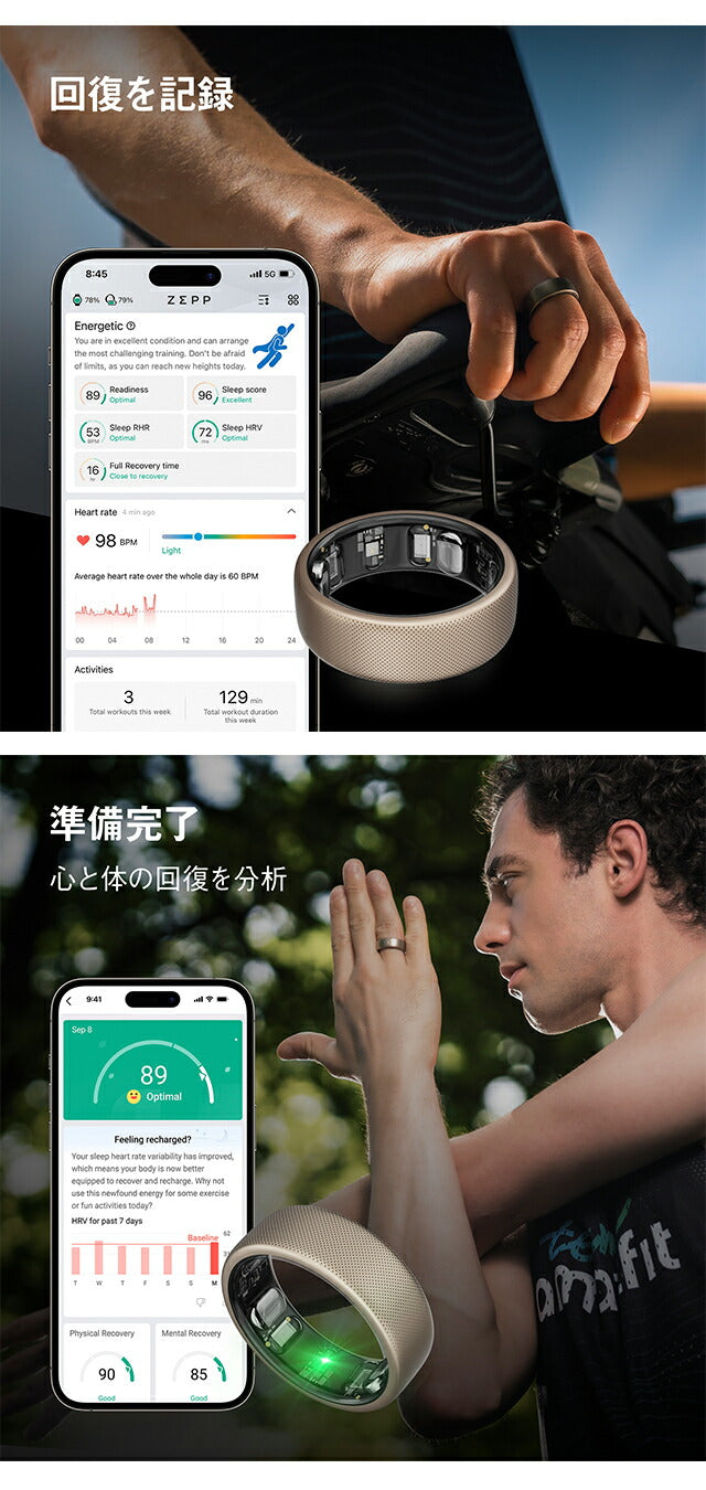正規品 アマズフィット サイズ12(L) 日本サイズ約25号 Bluetooth メンズ レディース スマートリング SP170070-S27 Amazfit Helio Ring ◆Amazfit(アマズフィット)は、2015年に設立、アメリカ・ドイツ・フランスなど世界90ヵ国以上で販売されているスマートウォッチブランドです。スポーツや健康に関する充実の機能をもつスマートハードウェアをリーズナブルに提供し、デイリーユースからアウトドアスポーツユースまで幅広いニーズに応えるブランドです。 エリートアスリートのために設計されたAmazfit Helio Ringは、最適なパフォーマンスが質の高いリカバリーから生まれることを理解しています。トレーニング負荷から睡眠の質、メンタル面まで、アスリートのリカバリー分析と指導において究極のツールです。 Xiaomi シャオミ