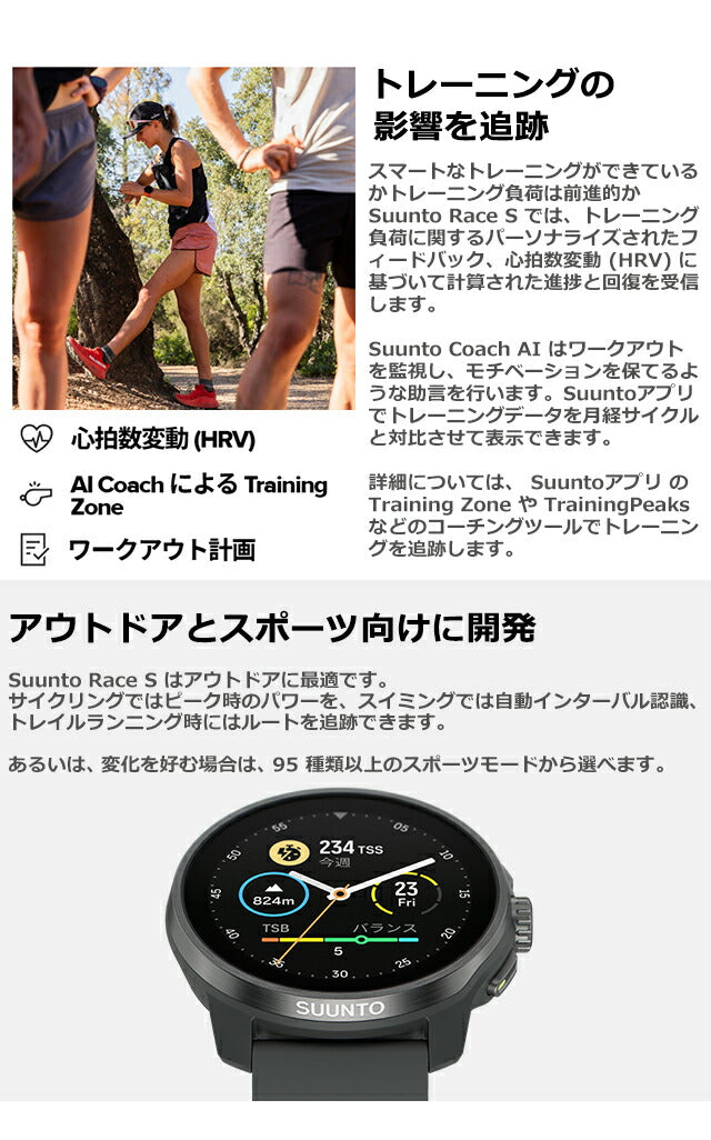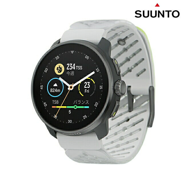 正規品 スント レース エス チタニウム カナリー メンズ レディース スマートウォッチ SS051105000 SUUNTO RACE S TITANIUM CANARY デジタル ホワイト イエロー 白 ◆Suunto Race S TITANIUMは、チタン製ベゼル仕様で、レースやチャレンジの準備を整えるためのツールを備え、トレーニングと回復のバランスをサポートします。鮮明な1.32インチのタッチスクリーンは、高速に動く状況や日光の中でも確実な読みやすさを実現します。リューズは、機能を閲覧するときに、かつてないほどの利便性と容易性を実現します。軍用基準でテストされているため、最も厳しい条件下に最適です。トレーニング負荷に関するパーソナライズされたフィードバック、心拍数変動(HRV)に基づいて計算された進捗と回復を受信します。