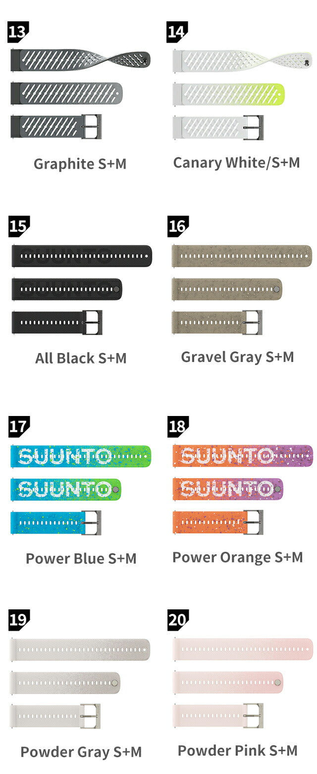 | 素材:ベルト | 【1-3】ファブリック 【4-20】シリコン |