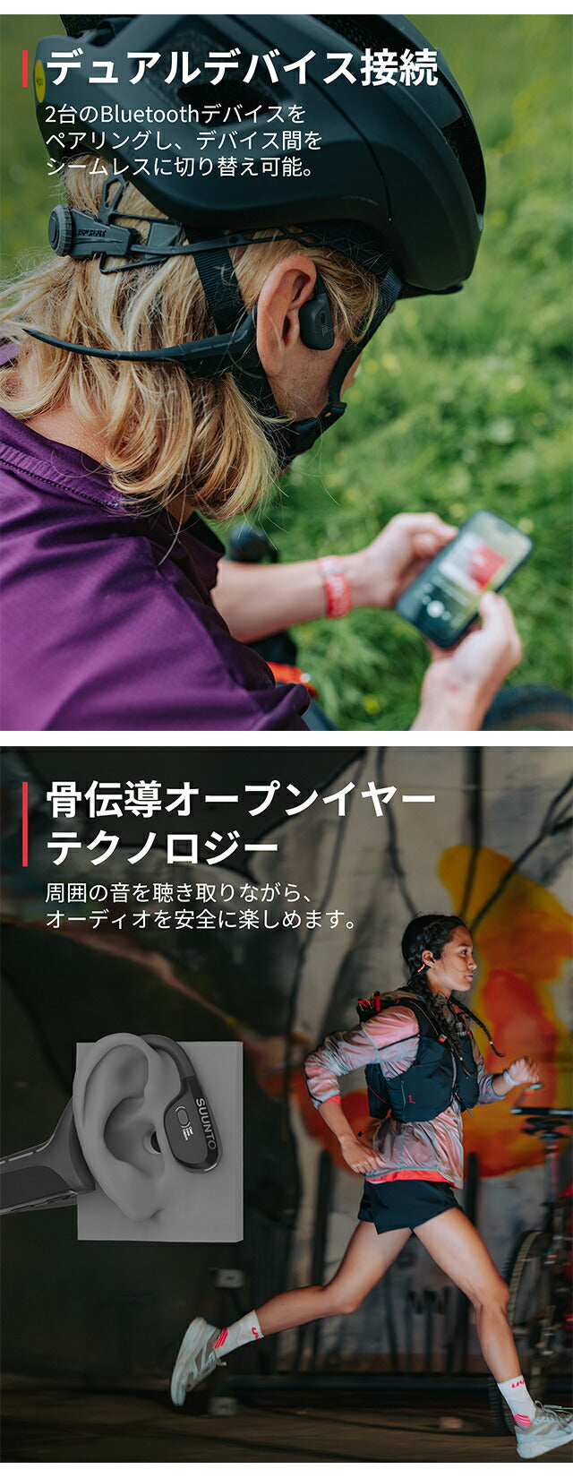 正規品 スント スントアクセサリー イヤホン チタン Bluetooth 中国製 メンズ レディース ヘッドホン SUUNTO Suunto Wing ブラック レッド イエロー 黒 選べるモデル ◆Suunto(スント)は、フィンランドの冒険家トーマス・ヴォホロネン(Tuomas Vohlonen)によって80年以上前に創設されました。過酷な条件下での製品テストなど独自の水準を追及しています。 冒険では、自然の音に耳を傾けますが、人生に音楽も重要です。LEDライト、最長10時間のバッテリー寿命、外部電源バンクによる20時間の追加充電が可能な Suunto Wing 骨伝導スポーツヘッドホンは、その両方を兼ね備えた完璧な製品です。オープンイヤー設計で、音楽を聴きながら周囲の音も聞き取ることができます。ヘッド両サイドに赤色 LED ライトを装備しており、トレイルでも一般道でも、薄暗い状況でも相手からの視認性を高めることができます。両手が離せないアドベンチャー向けに、ヘッドジェスチャーコントロールを搭載。あらゆるコンディションで冒険を楽しみながら、お気に入りの曲を聴くことができるように設計されています。 SS050942000 SS050944000 SS050943000