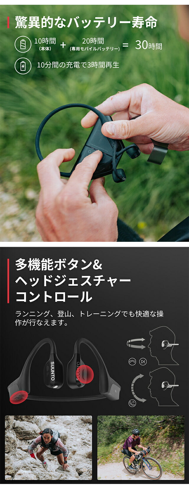 | 付属品 | SUUNTOオリジナルボックス ヘッドホン充電ケーブル、電源バンク、Suunto 保管バッグ、イヤープラグ 印刷版ユーザークイックガイド、国際保証リーフレット、安全のためのリーフレット |