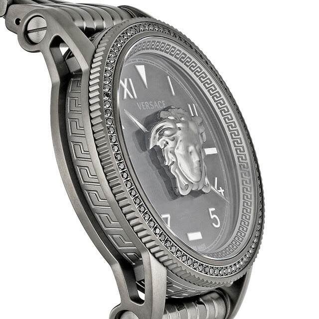 7年保証キャンペーン ヴェルサーチ Vパラッツォ スイス製 メンズ 腕時計 VE2V00922 VERSACE V-PALAZZO アナログ ブラック グレー 黒 ◆VERSACE(ヴェルサーチ)は、1978年にジャンニ・ヴェルサーチにより設立されたイタリアブランドです。ジャンニ亡き後、妹のドナテラ・ヴェルサーチが引き継いで先任デザイナーに就任。ヴェルサーチウォッチはすべてスイスで作られており、高品質かつ高精度さが魅力です。古典と現代の完璧なバランスをもつデザインは、幅広い世代に好まれています。 ブランドのシンボルでもあるメデューサを中央に大きく配置したダイヤルが特徴のモデル。存在感のあるケースが腕元を華やかにしてくれます。誕生日や記念日などのプレゼントにもおすすめです。 ヴェルサーチェ ベルサーチ