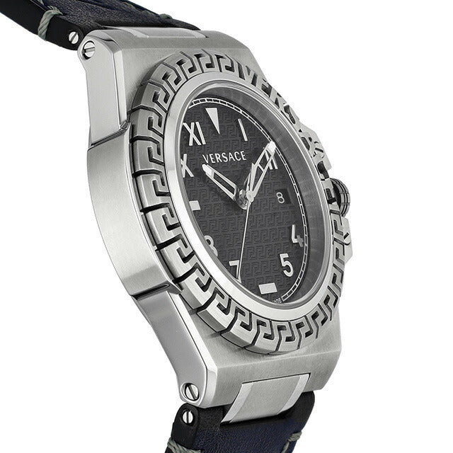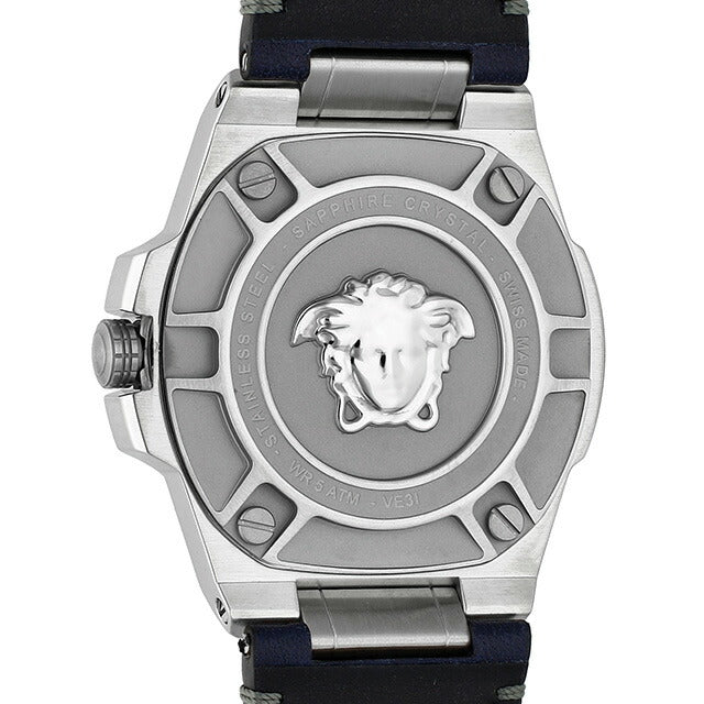 7年保証キャンペーン ヴェルサーチ グレカ リアクション スイス製 メンズ 腕時計 VE3I00122 VERSACE GRECA REACTION アナログ ブルー ネイビー ◆VERSACE(ヴェルサーチ)は、1978年にジャンニ・ヴェルサーチにより設立されたイタリアブランドです。ジャンニ亡き後、妹のドナテラ・ヴェルサーチが引き継いで先任デザイナーに就任。ヴェルサーチウォッチはすべてスイスで作られており、高品質かつ高精度さが魅力です。古典と現代の完璧なバランスをもつデザインは、幅広い世代に好まれています。 VERSACEのシンボルであるグレカ模様とブランドロゴを大胆にデザイン。ローマ字とアラビア数字をミックスした「ユニークダイヤル」が特徴的なコレクションです。裏蓋には、ブランドのアイコンであるメデューサが配置されています。誕生日や記念日のプレゼントにもおすすめです。 ヴェルサーチェ ベルサーチ