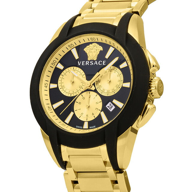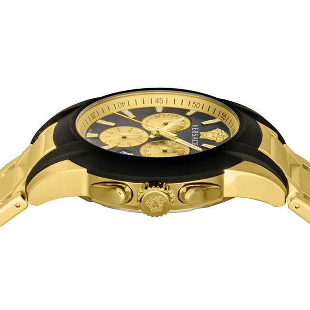7年保証キャンペーン ヴェルサーチ クロノグラフ スイス製 メンズ 腕時計 VEM800524 VERSACE CHARACTER CHRONO アナログ ブラック ゴールド 黒 ◆VERSACE(ヴェルサーチ)は、1978年にジャンニ・ヴェルサーチにより設立されたイタリアブランドです。ジャンニ亡き後、妹のドナテラ・ヴェルサーチが引き継いで先任デザイナーに就任。ヴェルサーチウォッチはすべてスイスで作られており、高品質かつ高精度さが魅力です。古典と現代の完璧なバランスをもつデザインは、幅広い世代に好まれています。 ステンレスブレスレットを採用したスポーティなクロノグラフモデル。12時位置にはメドゥーサが配置され、強い個性を放ちます。華やかな見た目と高い実用性を兼ね備えています。 ヴェルサーチェ ベルサーチ