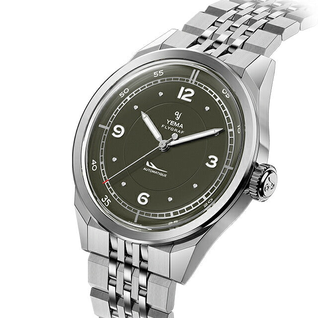 正規品 イエマ フライグラフパイロット2025 フランス製 メンズ 腕時計 YFLY25-ZMS YEMA FLYGRAF アナログ カーキ ◆YEMA(イエマ)は、1948年以来のフランスの歴史的なブランドです。YEMAワークショップは、スイス国境沿いのジュラ山塊のオードゥーにあり、フランスの小さな町モルトーを拠点としています。歴史的および地理的要素により、フランスの時計製造会社YEMAは独自の「メゾン」機械式ムーブメントを設計することができました。 YEMAの象徴的なモデルをネオヴィンテージ風に再解釈したもので、航空のスピリットを捉えながら手首に洗練された存在感を放つデザイン。特徴的なケースが時計のレトロな雰囲気を際立たせ、バランスの取れたセクターダイヤルは視認性を高め、1930年代と1940年代のクラシックな航空時計へのオマージュを捧げています。 機械式腕時計